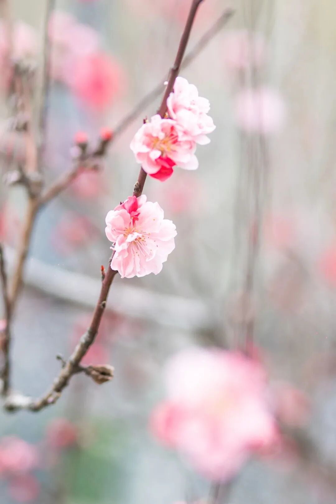 比起凌霜傲雪的北方,其实被大家吐槽的“湿冷的武汉冬天”更适合梅花生长。梅花低调,却自带古典静谧的美。堤角公园里梅花红润,姿色迷人,花枝斜逸,原始奇妙。