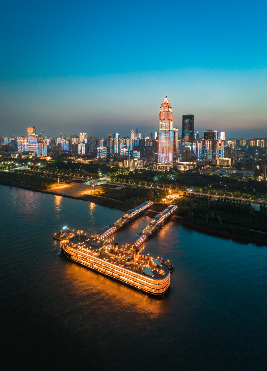 知音号游轮上一片灯火璀璨,汽笛声划破夜色。登上大型轮船,带你穿越回上世纪初大汉口码头,沉浸式观看触及心灵的武汉故事。
