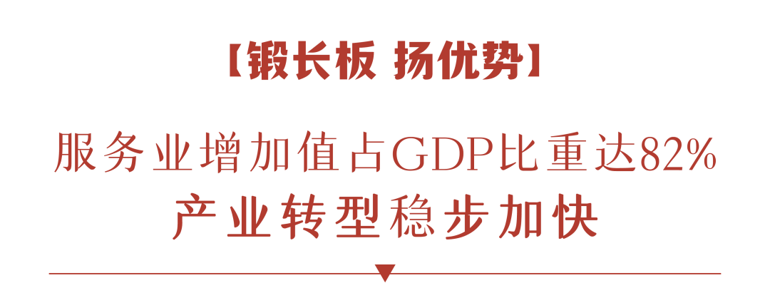 加快打造高端服务业创新发展示范区,服务业增加值占GDP比重达82%,现代服务业向专业化、集聚化、价值链高端化不断延伸。