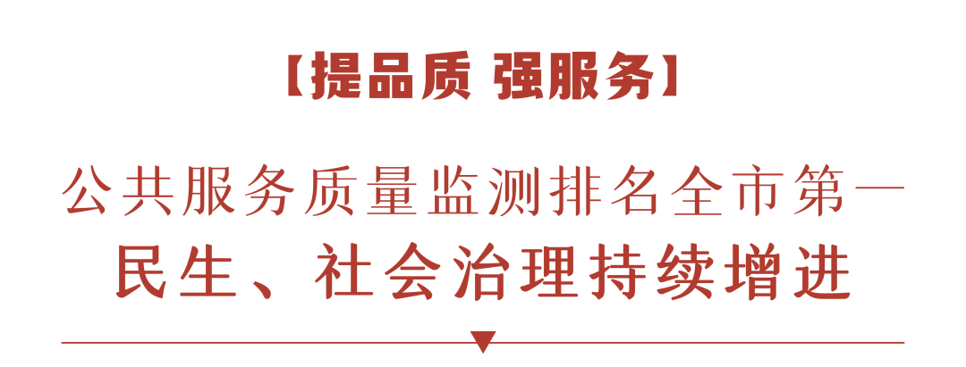 公共服务更温暖。持续推进教育强区、健康强区、人才强区、文化强区、生态强区“五个强区”建设。“双减”工作经验在全国推介,中、高考成绩稳居全市前列。武汉儿童医院妇幼综合大楼正式启用,市八医院诊疗服务能力大幅提升,全年累计接待门诊病例45.93万人次、同比增长77.47%。“一老一小”服务扩容提质。公共服务质量监测排名全市第一。