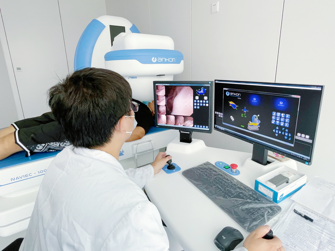 ● 消化内镜中心医生为患者做磁控胶囊胃镜检查