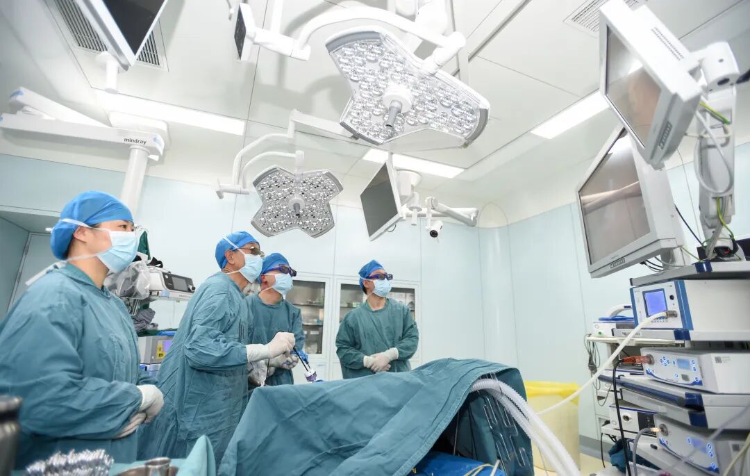 ● 结直肠肛门外科导师主任、主任医师陈继贵带领团队做腹腔镜下结肠次全切除术