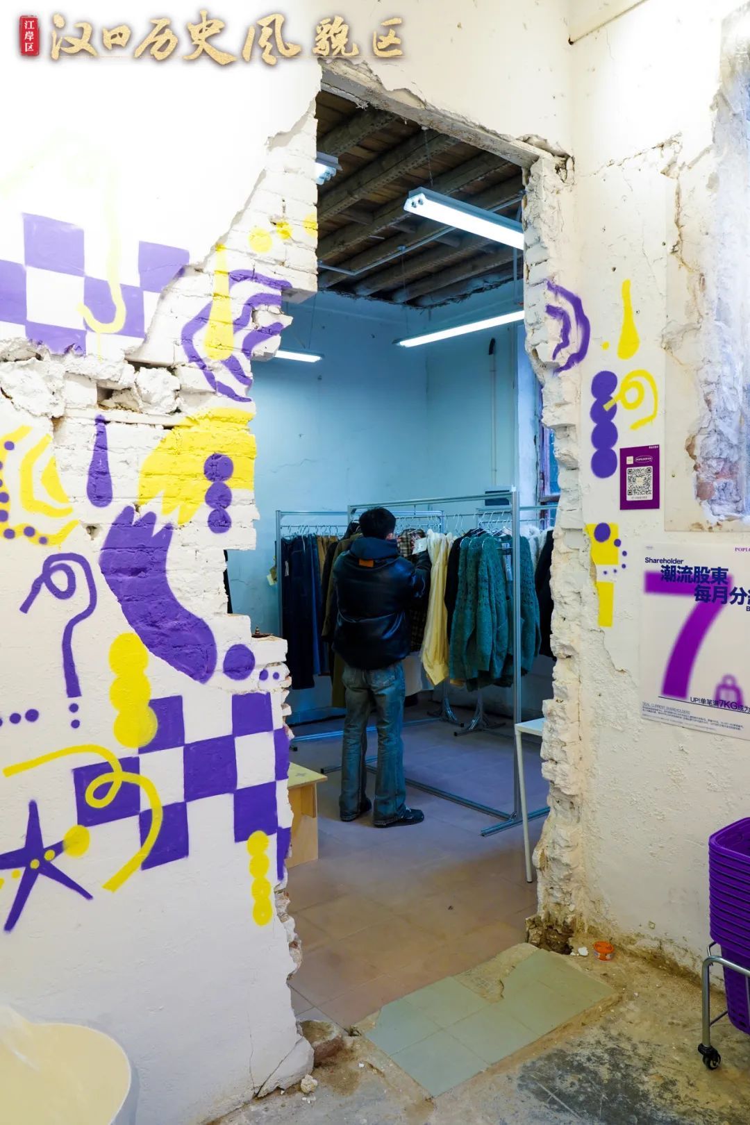在延庆里,POPLOOP品牌主理人黄志伟正忙着整理衣架上的服装。作为武汉首家称重销售的服装买手店,POPLOOP聚集着众多中国小众设计师品牌服装,通过“论斤称”的方式进行售卖。