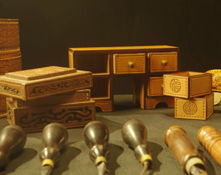 追溯皮雕的起源,最早见于先秦时期的手工艺专著《周礼·考工记》。该技艺以皮革为载体,根据创作构图所需,调配特殊试剂浸塑皮革,在慢而精心的专注下,用刻刀雕琢细腻纹路,用精绝技艺使得皮雕成为令人叹为观止的艺术作品。