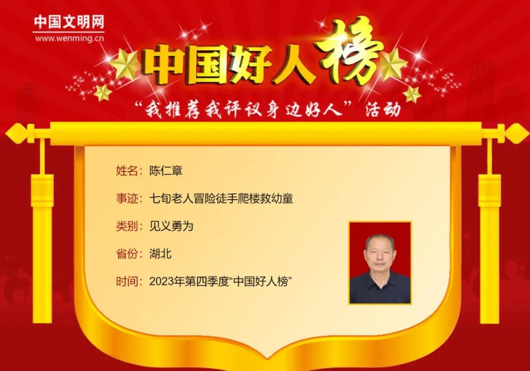 陈仁章:七旬老人冒险徒手爬楼救幼童(黄冈市)