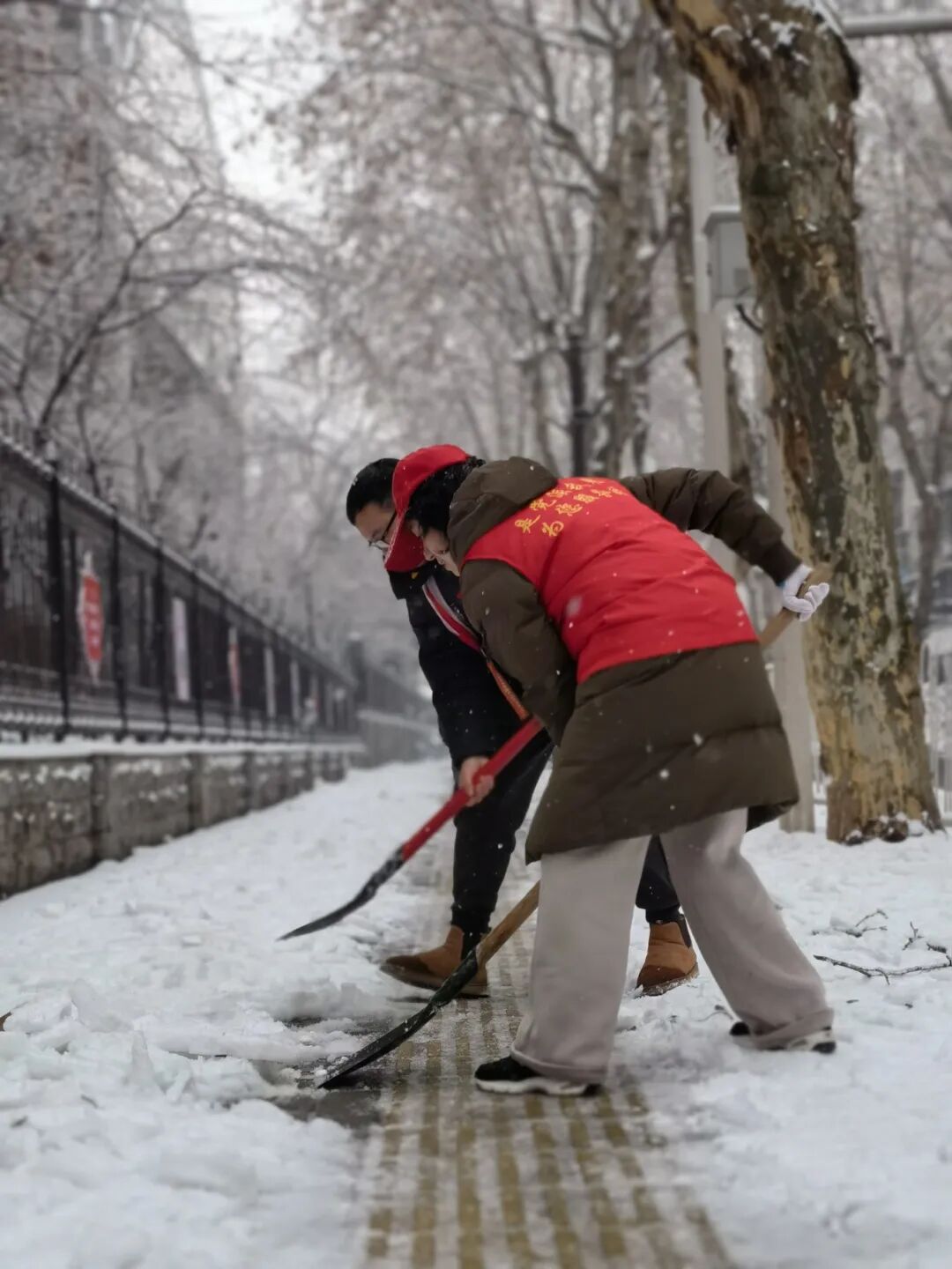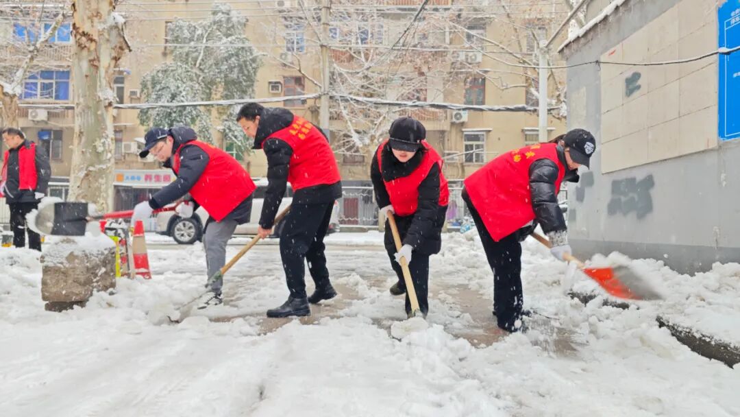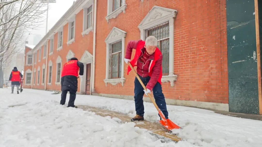 大家拿着工具,化身“除雪小分队”,用小行动助力居民出行,用热心融化冰雪。