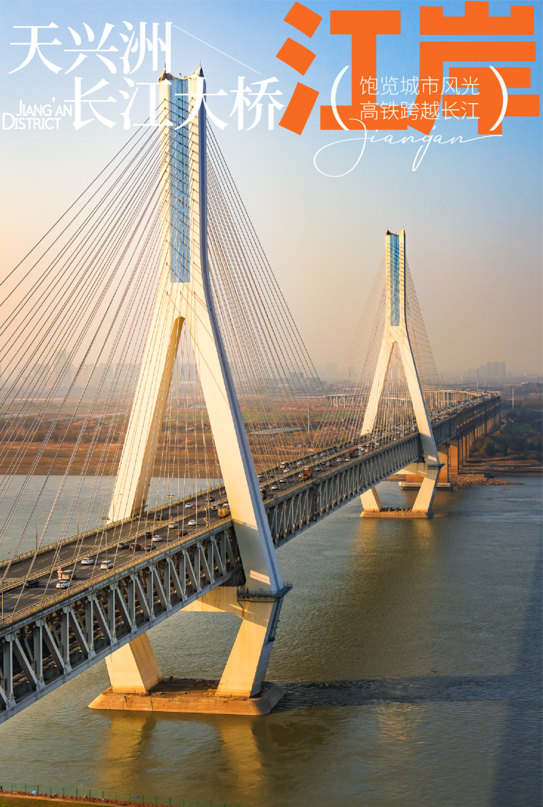 贯通两岸的天兴洲长江大桥,是武汉三环线的重要组成部分之一。这座公铁两用的跨江大桥,也是继武汉长江大桥后武汉第二座公铁两用桥,京广高速铁路穿越而过,与长江大桥形成铁路环线。