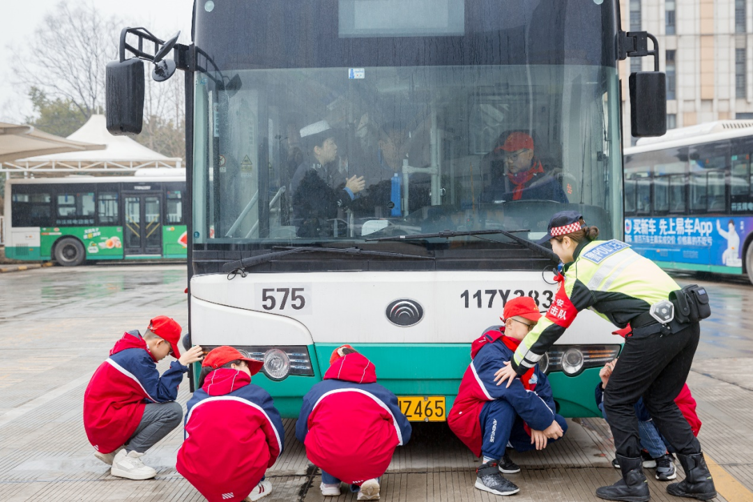 区交通大队联合武汉市育才华岭小学、武汉市公共交通集团有限责任公司第一营运公司,共同开展“践行雷锋精神 交通安全齐参与”交通安全实践课。区交通大队“丽斯交通课堂”民警彭丽斯带领同学们到余华岭公交场站,分享交通安全知识,请同学们轮流坐在公交车司机位体验感受车辆“盲区”,并进行“清扫公交车”志愿服务活动。