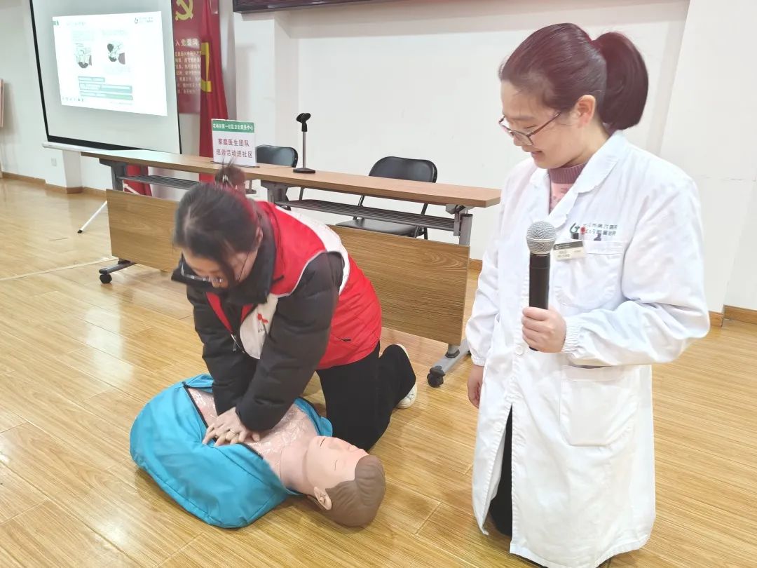 花桥街道社工站佳益社工联合花桥社区、花桥街道第一社区卫生服务中心开展“学技能 促服务”志愿者技能增长培训。活动中,医生采用“理论讲解和示范模拟”的方式重点围绕“心肺复苏”进行科普,邀请在座志愿者参与实际操作,现场指导居民正确的按压和急救细节。本次活动,医生还为志愿者详细讲解了春季传染性疾病的种类、各类疾病的症状和传播途径,并一一列举正确的预防措施。