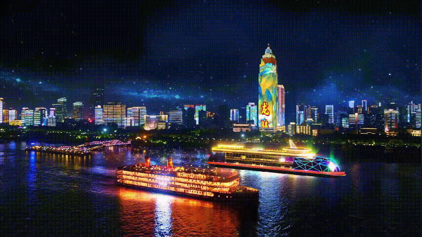 春节期间的长江灯光秀特辑,传统文化与数字科技的创新结合,让栩栩如生的金色巨龙在江岸的楼宇、江面上穿梭。