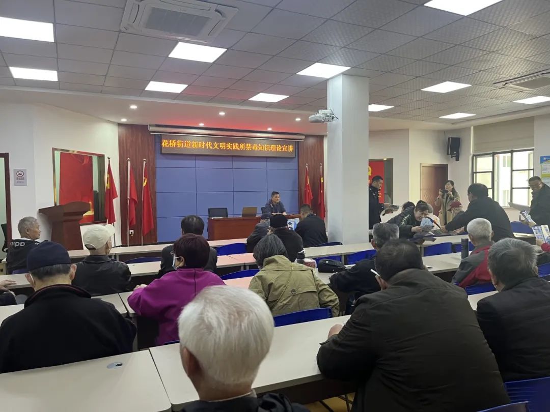 花桥街道蔡家田社区联合管段民警开展禁毒知识宣传讲座,提高辖区居民“远离毒品,珍爱生命”的意识。同时,结合本周网格巡查和消防夜查双摸排,对辖区内棋牌室、快递点等场所全面摸排并进行禁毒宣传,营造“远离毒品,拒绝毒品”的良好社区氛围。