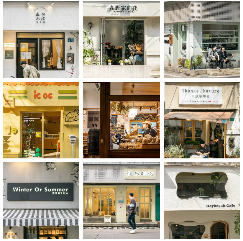 各种精致网红小店应接不暇。在这里你能品尝到咸蛋黄味的冰激凌、喝到花椒味的Dirty咖啡,看到超乖的柴犬和风味咖啡“和谐同框”,沉醉在如漫画般的梦幻花店中......