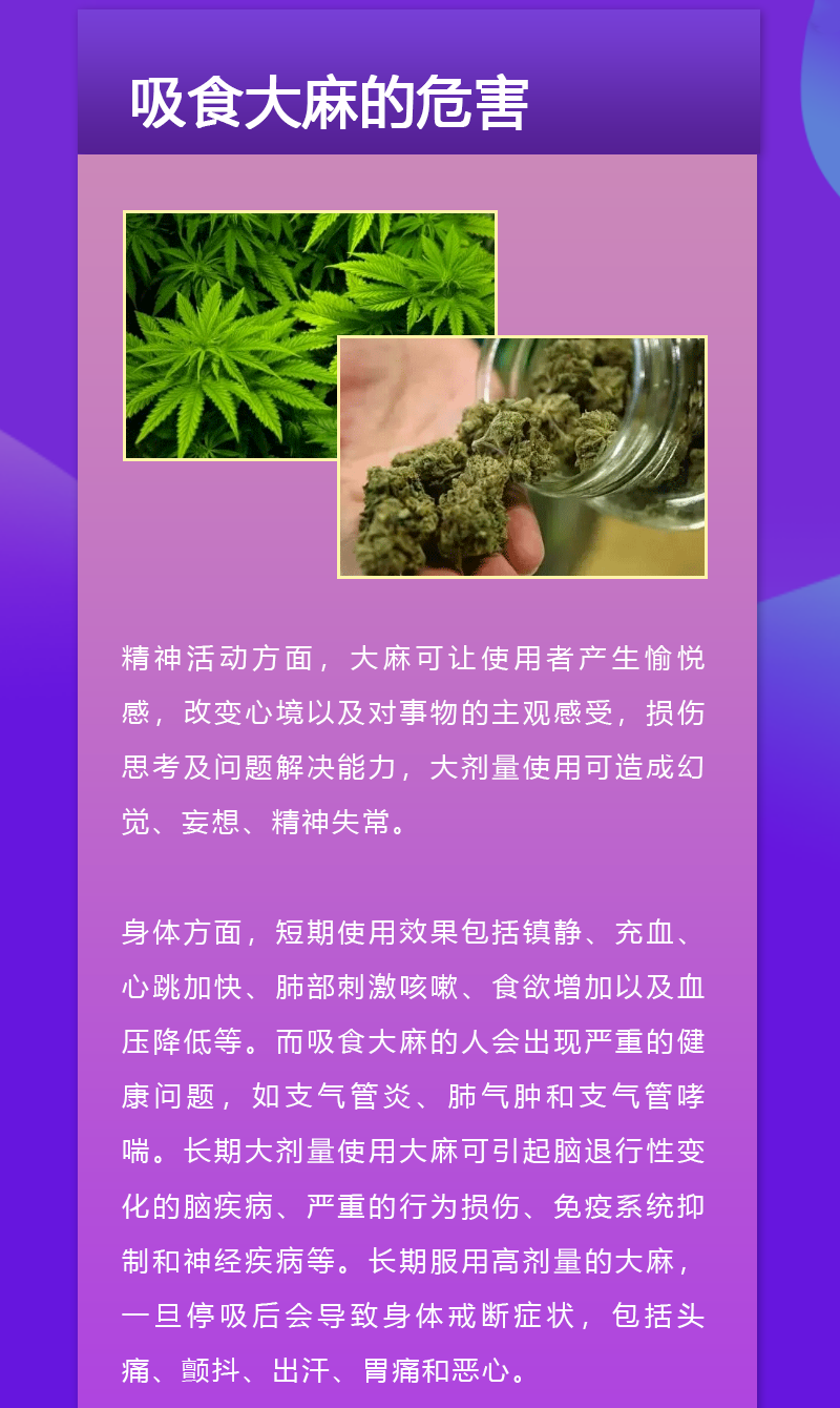 大麻被列入《麻醉药品品种目录(2013年版)》中,属于我国管制的毒品,长期食用容易成瘾,并对人体神经系统、消化系统等造成伤害。根据《麻醉药品和精神药品管理条例》,国家对麻醉药品药用原植物以及麻醉药品和精神药品实施管制。