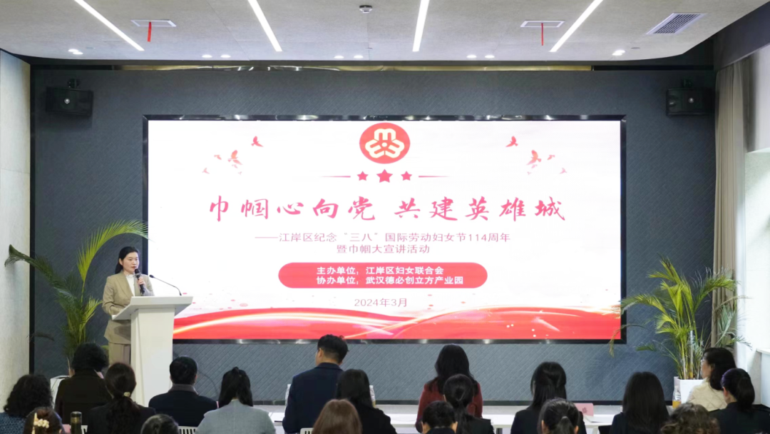 区妇联“巾帼绽芳华”宣讲团在创立方产业园举办纪念三八国际劳动妇女节114周年暨“巾帼心向党、共建英雄城”宣讲展示活动。4位宣讲团成员围绕学习贯彻习近平新时代中国特色社会主义思想,讲述奋斗故事、畅谈妇女美好生活的变化,生动展现了广大妇女在各个岗位、各条战线争当排头兵、领头雁,促进江岸高质量发展的巾帼风采。