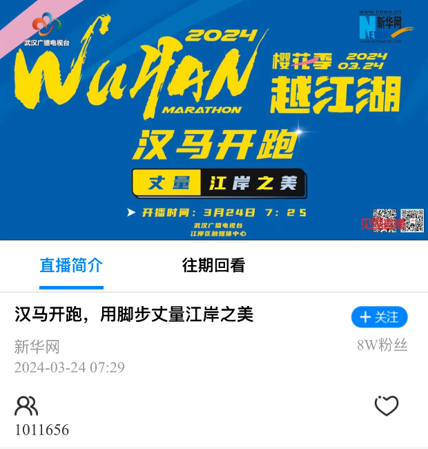 查看《汉马开跑,用脚步丈量江岸之美》完整直播过程,请点击下方链接:http://plive.appwuhan.com/20240322/jw_2d0d1db4a9f99c8ba825808df169522d.html?type=wxChat&code=011q9Lml2f9vad4FmQkl2BOSWz4q9Lmf&state=STATE