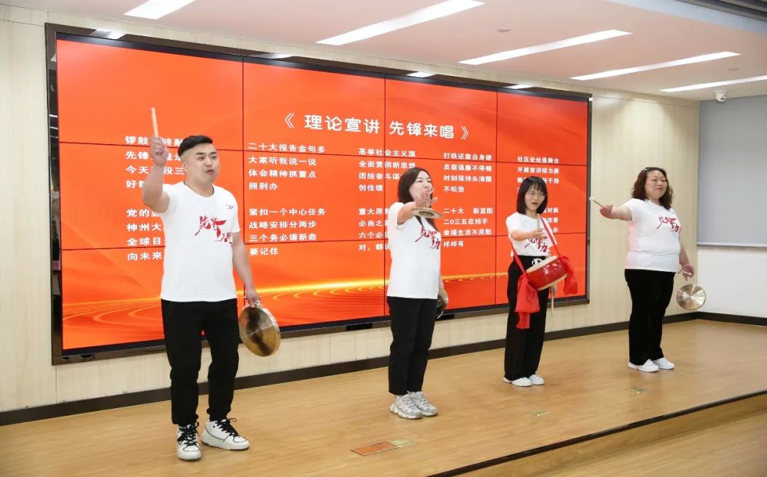 看朝气蓬勃的后浪们表演三句半,让理论宣讲焕发“生命力”。大智街道先锋社区“先锋力量”宣讲队和中南民大青年理论宣讲团,为群众表演三句半《理论宣讲先锋来唱》和诗朗诵《总书记和我们在一起》,用“亲身经历”讲出“理论魅力”、用“邻里家常”唠出“理政新篇”。