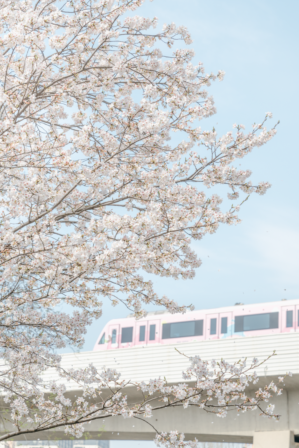 轨道交通1号线换上限定皮肤,载着人们穿梭在季节的光影间,追逐樱花季的脚步,在江岸缤纷的春光中穿行。