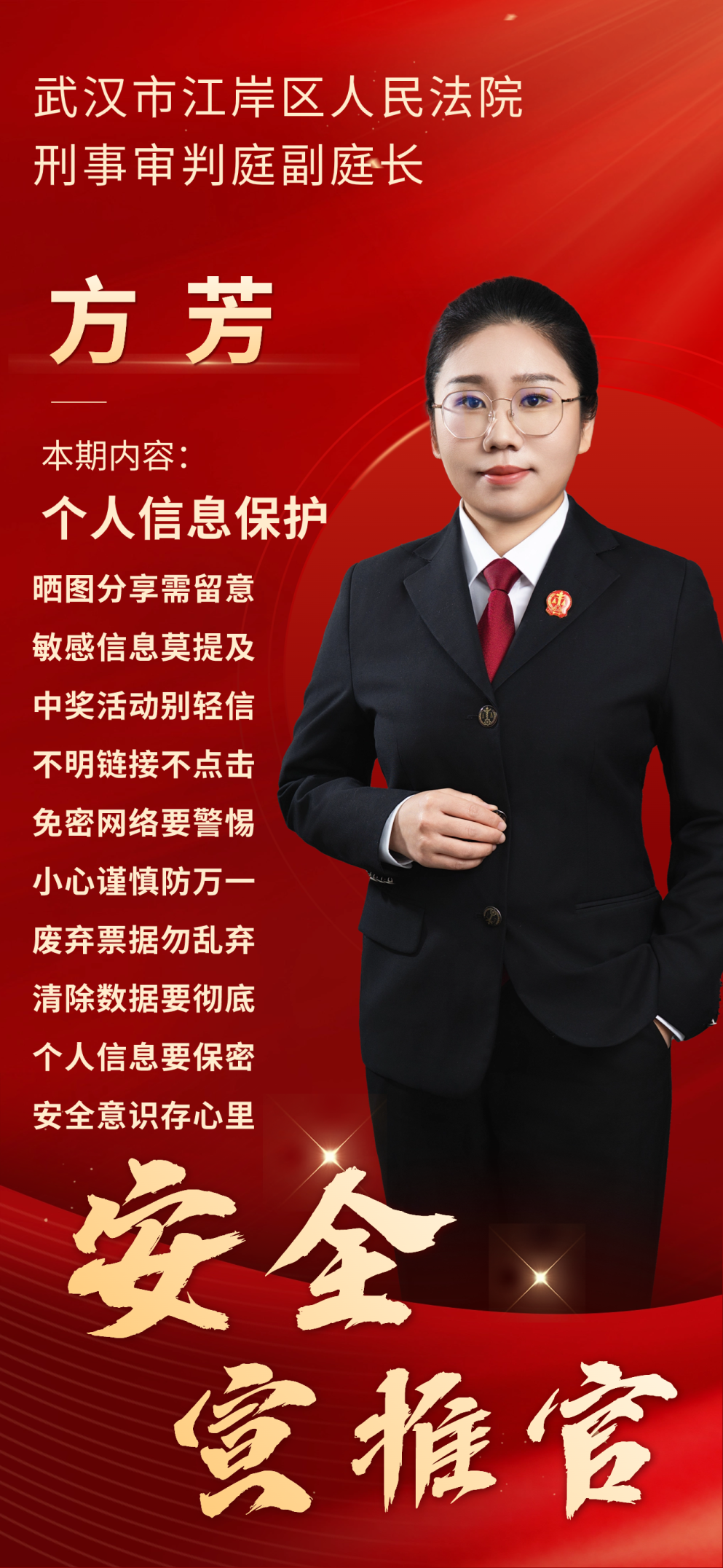 信息技术发展给人们生活带来便捷的同时,也增加个人信息侵害的风险。日常生活中,个人信息的泄露往往会让人频繁遭受各种电话、短信等骚扰,侵犯个人隐私,影响个人生活安宁。由中共江岸区委宣传部、江岸区融媒体中心共同策划推出“安全宣推官”系列,本期安全宣推官,武汉市江岸区人民法院法官方芳带来《个人信息保护》。