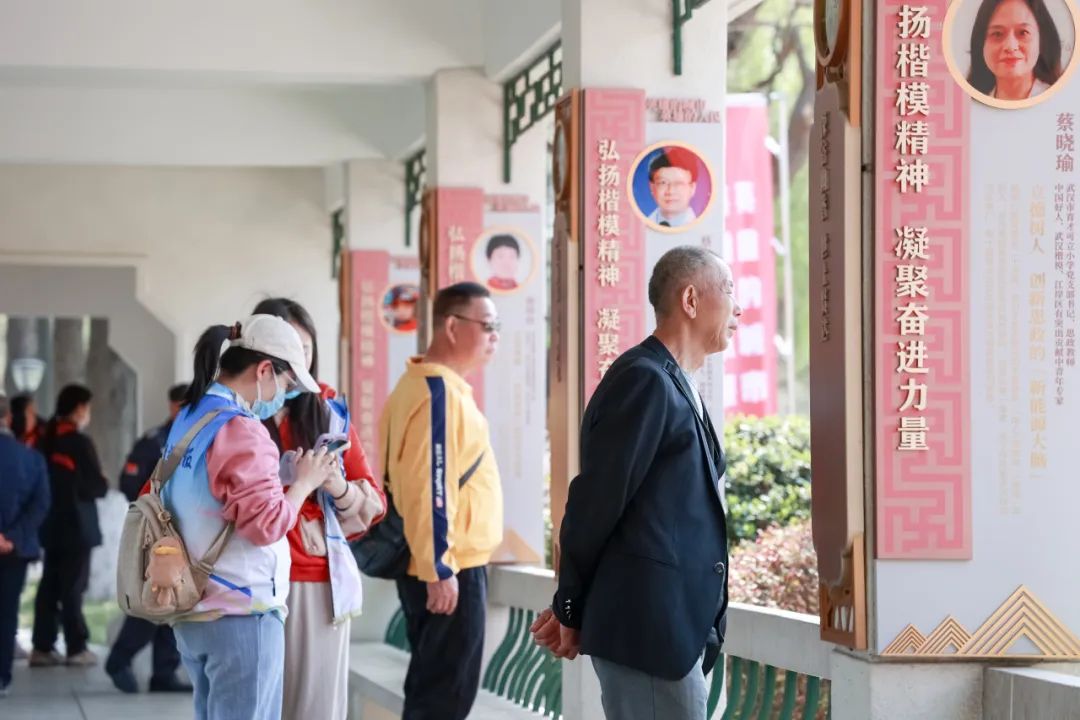 来自江岸区大智街道的刘女士尤为激动,“这不是‘筷子婆婆’嘛,我认识呢,这就是我们身边的故事!”她和家人一起在长廊中与各位楷模人物展板合影,“很骄傲!在风景优美的公园里设置楷模文化长廊,展示的就是我们熟悉的可亲可敬、可感可学的人,值得点赞。”
