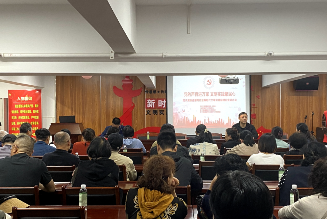 区委宣传部(文明办)组织区新时代文明实践中心、塔子湖街道新时代文明实践所、塔子湖街道越秀社区新时代文明实践站开展“党的声音进万家 文明实践聚民心”理论宣讲活动。紧扣党的二十大报告原文,用接地气、通民气的语言,对党的二十大精神深入浅出地进行解读,推动社会主义核心价值观落地生根。