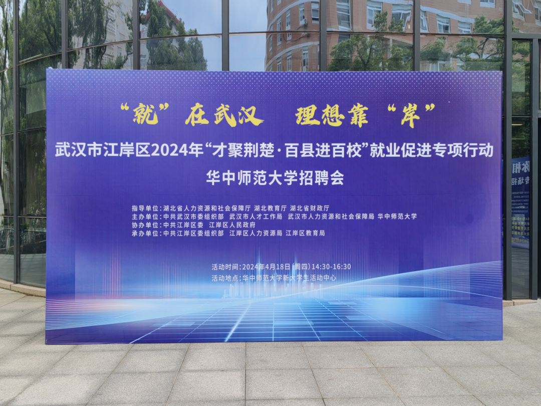 区委组织部、区人力资源局、区教育局承办的“就在武汉 理想靠岸”武汉市江岸区2024年“才聚荆楚·百县进百校”就业促进专项行动专场招聘会在华中师范大学成功举办。50家用人单位进场招聘,提供就业岗位800余个,江岸辖区多个知名企业及17所中小学、幼儿园参会。下一步将持续深入推进“学子聚汉”工程,为江岸高质量发展提供人才支撑。