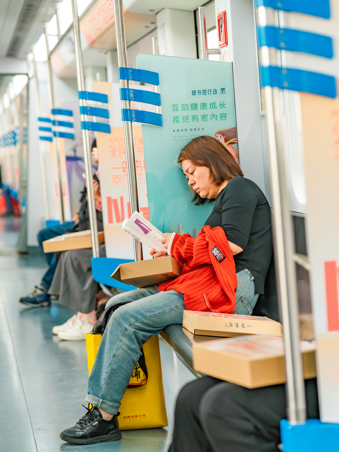 “城市书架”主题列车亮相轨道交通1号线,我们随时可以坐上“移动的城市书架”,去寻找诗和远方。长江出版社和一蓑书店也精心准备了500个图书盲盒,在地铁里开展了一场创意十足的图书漂流活动,带领大家畅游读书月。