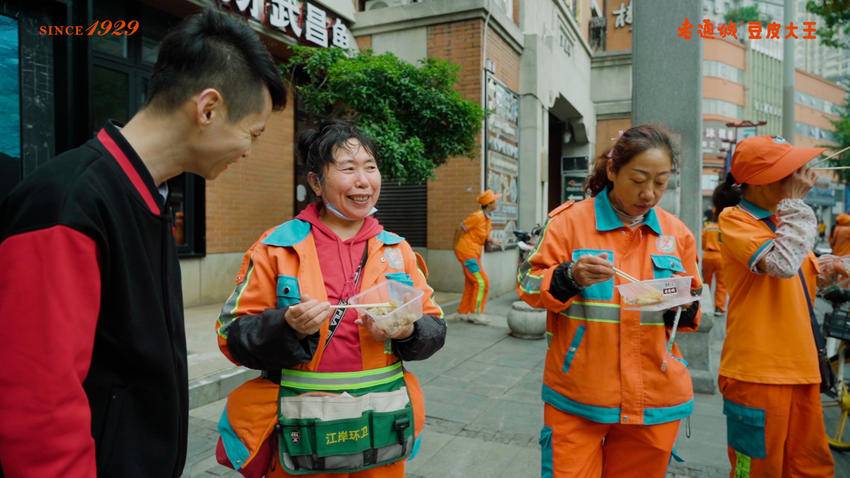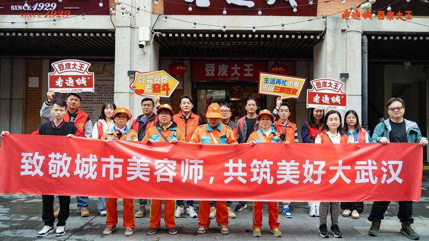 值此五一劳动节,武汉市江岸区大智街道联合武汉百年老字号品牌“老通城豆皮大王”发起了一场温馨活动,为奋战在一线的城市“美容师”们送去了百份精心制作的三鲜豆皮,表达对他们的敬意和关爱。
