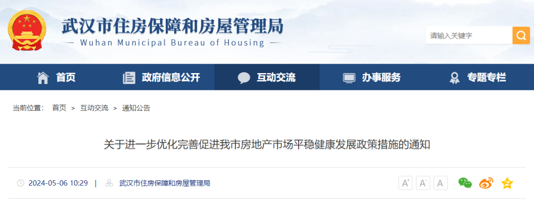 5月6日武汉市住房保障和房屋管理局等七部门联合发布关于进一步优化完善促进武汉市房地产市场平稳健康发展政策措施的通知