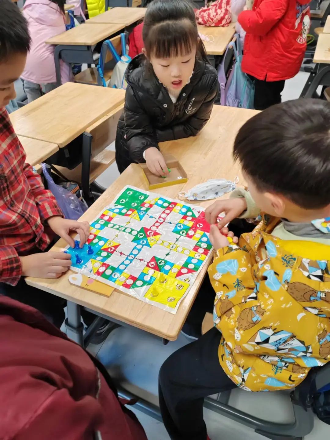 叮铃铃,叮铃铃……欢快的下课铃声瞬间调高了校园的“音量键”,江岸区长春街小学的校园里一下子热闹起来。同学们纷纷离开座位,这一群那一堆,有的翻花绳,有的挑木棍,有的走数字华容道,有的玩飞行棋,还有的三三两两凑一起探索书中奥秘……这些活动既安全又有趣,还能促进同学情谊,大家乐在其中。