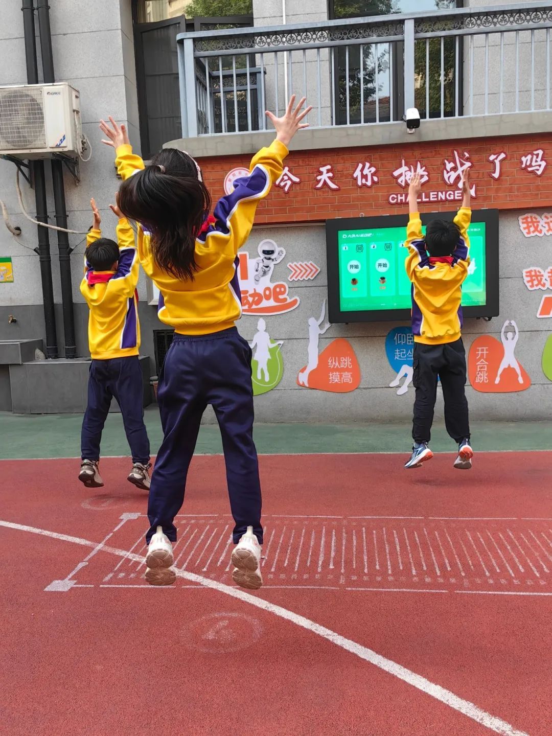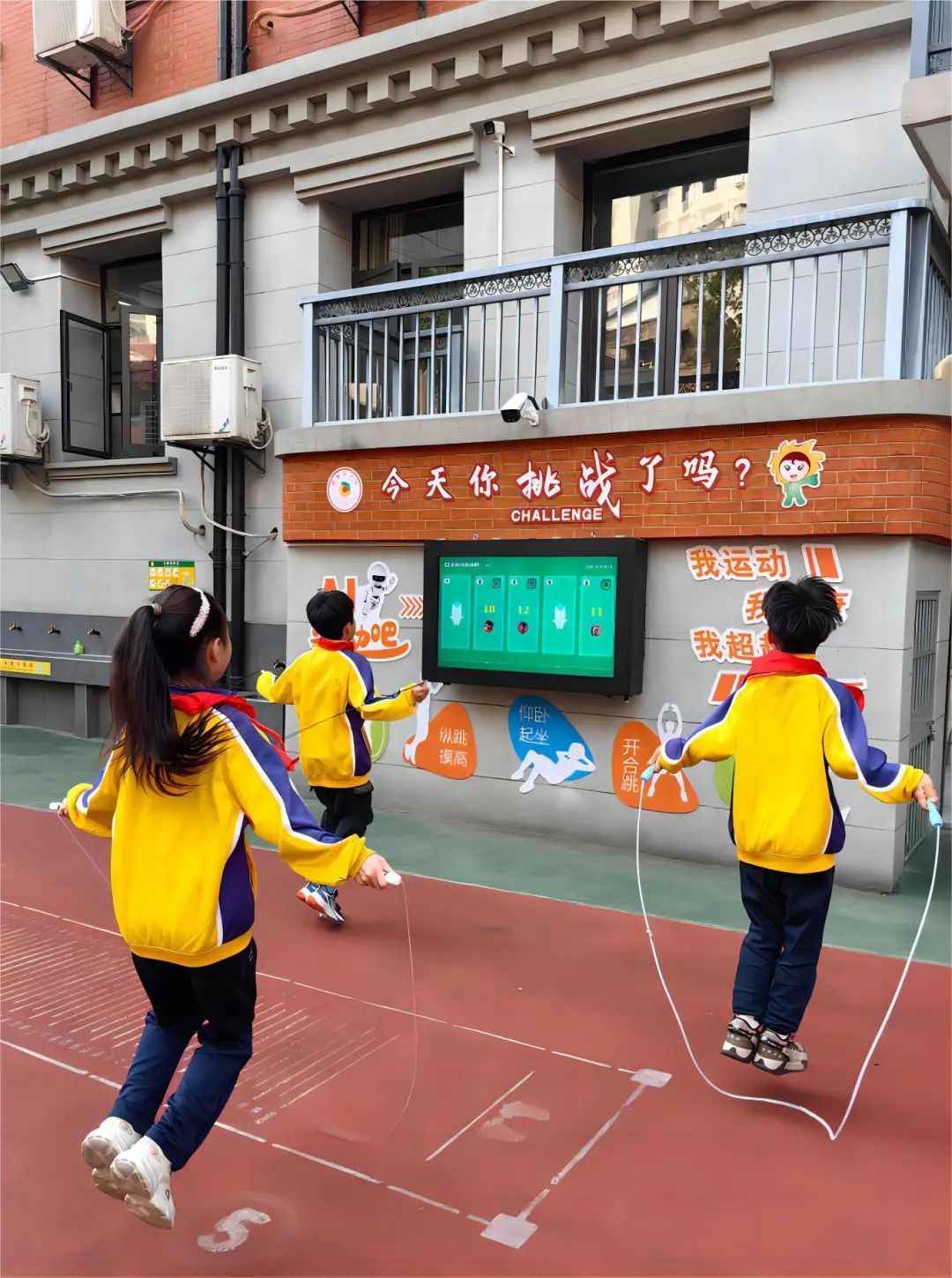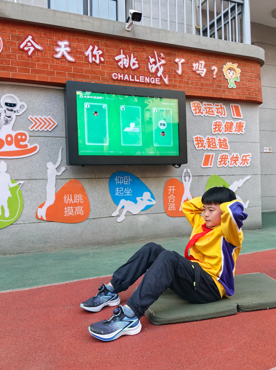 “今天你挑战了吗?”江岸区鄱阳街小学操场墙壁上智能设备标语令人耳目一新。为激发学生的运动兴趣,养成自主运动的好习惯,学校引进AI运动系统。该系统可通过人脸识别,对学生的五大运动项目:开合跳、跳绳、仰卧起坐、纵跳摸高与立定跳远进行数据采集和记录。一下课,孩子们迫不及待地冲向操场,开启一天的挑战。