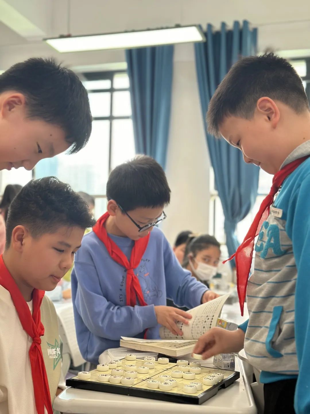 国际象棋、围棋、空灵鼓、益智卡牌......品类丰富;传统游戏花样百变,焕发新光彩;项目式研究投壶,智趣交融;互动游戏地贴,乐趣无穷;小小花艺师指尖轻舞,绿意盎然;小鱼饲养员呵护生命,水波荡漾;“全民”花样跳绳,一跃一跳、一招一式间,尽显校园风采。