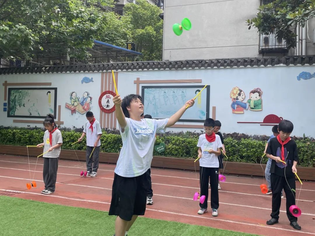 武汉市实验博雅第二小学因操场面积有限,分时段、分年级开展室内外活动,已成为课间十分钟常态。室内活动,以益智类游戏和小范围游戏为主,如魔方、下棋、套圈、投壶,益智又有趣;室外活动,以传统游戏为主,如滚铁环、跳长绳、踢毽子、跳皮筋等,帮助孩子们释放天性。
