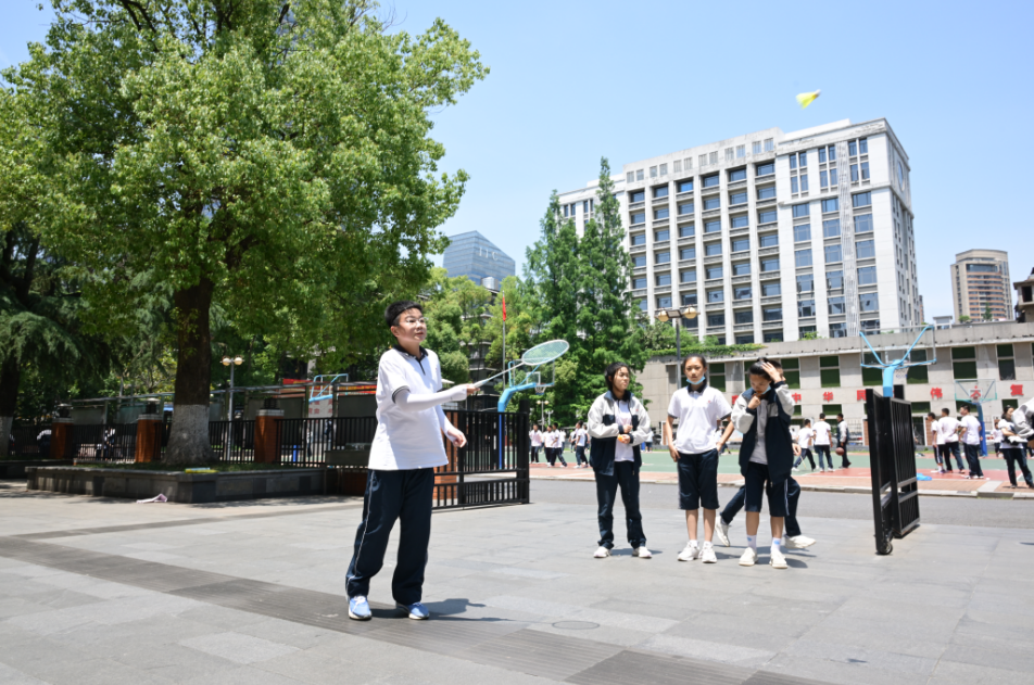武汉市第二初级中学充分利用课间十分钟,打造多彩、趣味、安全的多元化课间活动。学生或在老师的带领下,开展趣味运动操、拔河等团队游戏;或自由组合,在操场上打羽毛球、打篮球、乒乓球等挥洒汗水;或在老师的指导下,悉心栽种植物、除草养护;或在阅读角、阅览室,静心阅读。