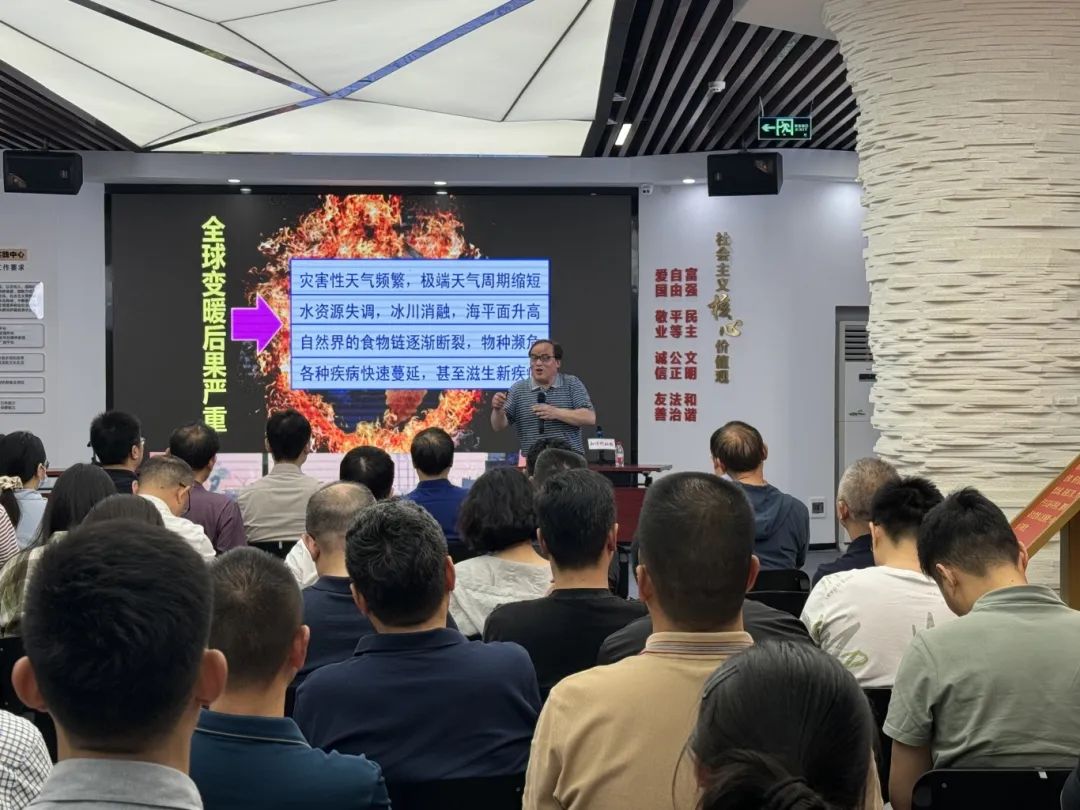 “地球这个美丽的蓝色星球,是我们生活的美好家园,可由于碳排放量迅速增加,导致地球生病了。一次次气候的反复无常,一场场地质灾害的频频发生,地球向我们人类发出的警告:再不环保,人类将无未来。”中国地质大学教授、国家自然资源首席科学传播专家徐世球教授以《“碳”为“关”止:碳达峰与碳中和》为题,从“一碳究竟、双碳目标、三碳责任”等方面,告诉大家如何用低碳行动保护地球家园,从生活中的点滴小事做起,自觉践行低碳行动。