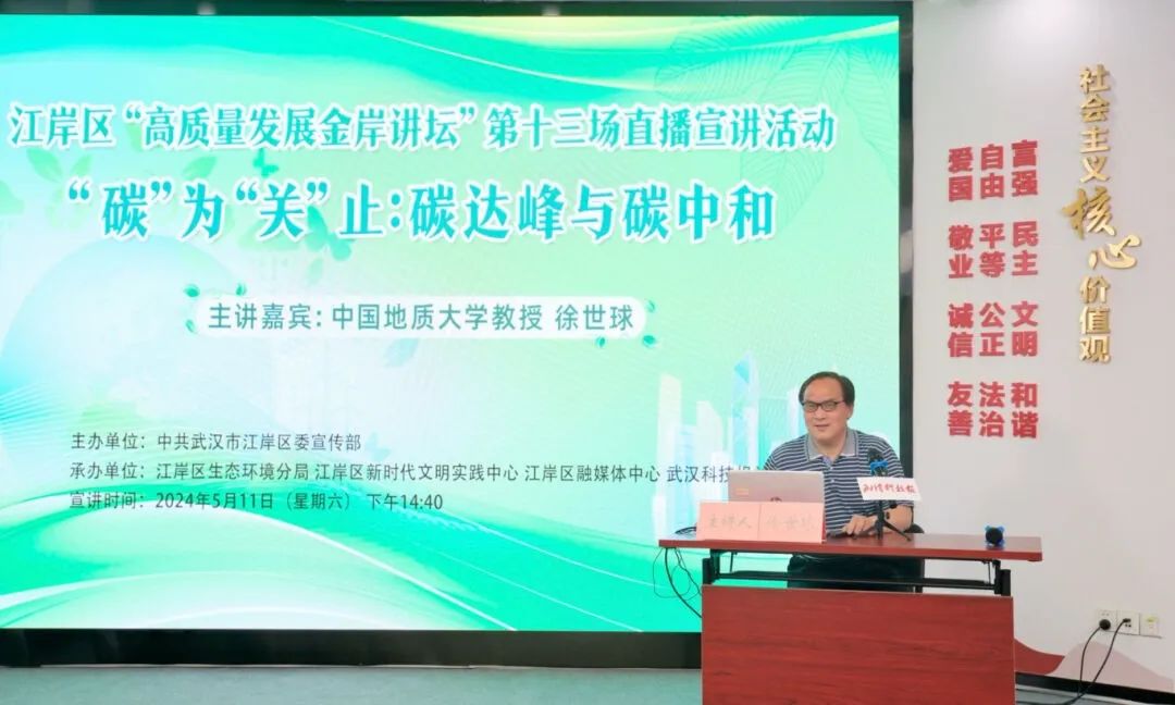 5月11日,江岸区“高质量发展金岸讲坛”第十三场直播宣讲活动在江岸区新时代文明实践中心举行,超过35万人次通过央视频、科普中国、武汉科技报、大江金岸等平台收看。