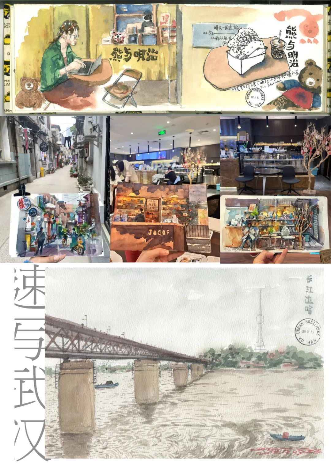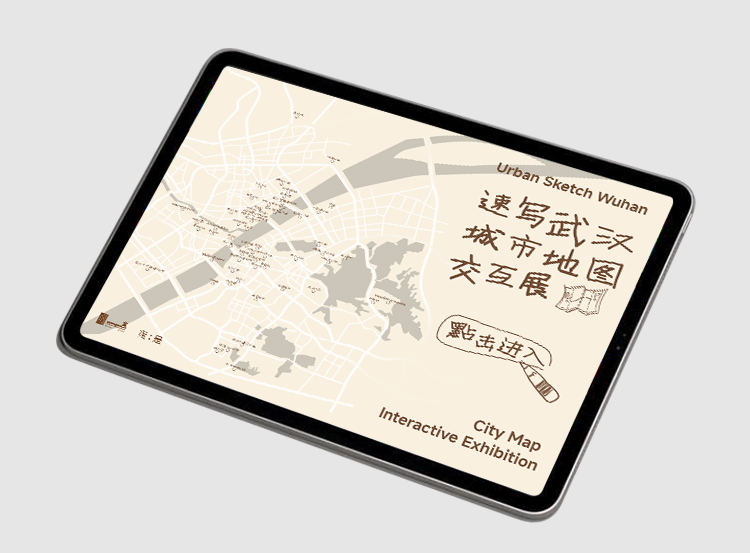 「城市速写系列-速写武汉地图交互展」则收录了2021年至今「速写武汉」组织的多达60多期活动的图像资料,作为民间兴趣社群,「速写武汉」热衷于用静态的方式体验城市,而在本次展览中,一套交互程序让「速写武汉」笔下的城市更加灵动。