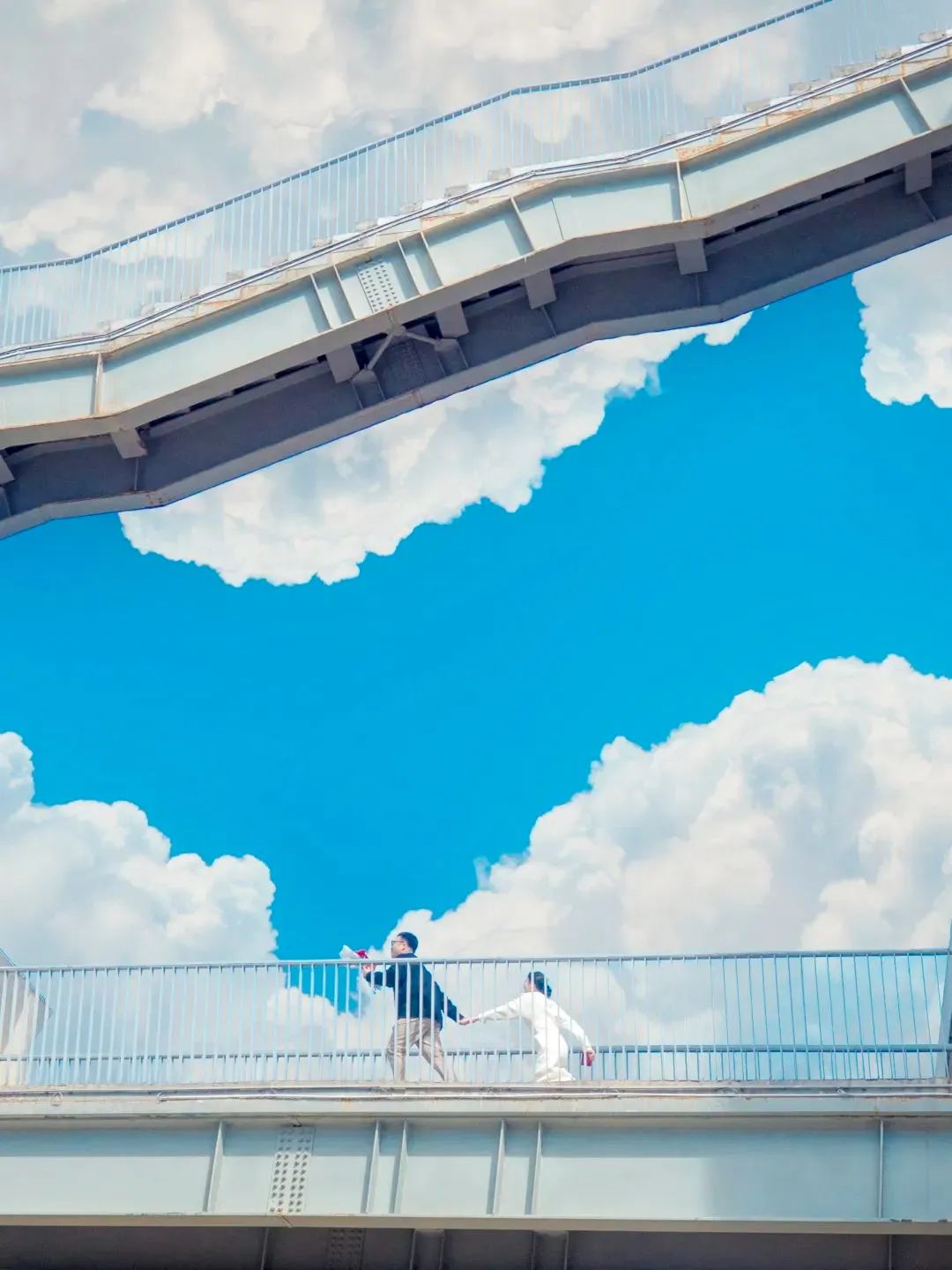 走在空中走廊,仿佛置身于天空之城,屹立在云端之巅。湛蓝的天空,如棉花糖般柔软白云,一伸手便可以触及到,纯粹、洁净又静谧。