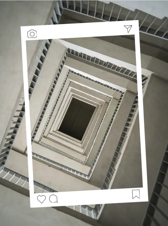 多层空间螺旋直上不断攀升,看一眼直觉眩晕,没有多余的装饰,只有水泥构成的线条,横平竖直,整齐划一,粗狂又不失美感。