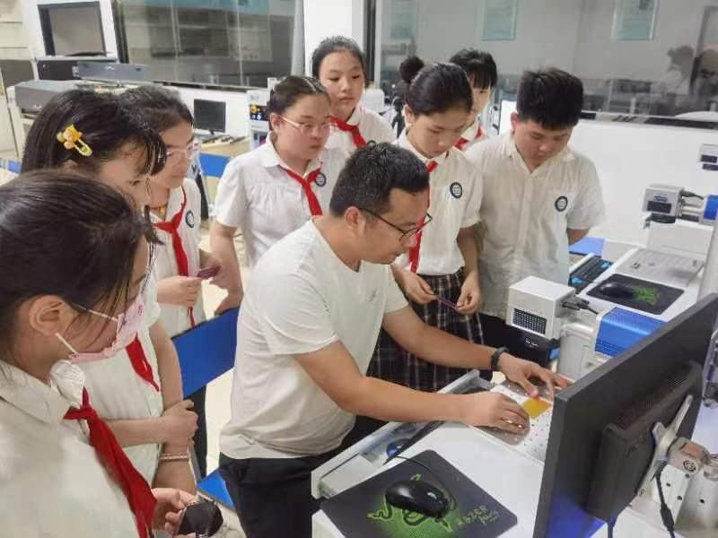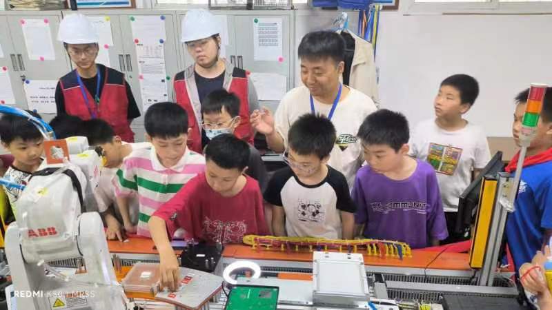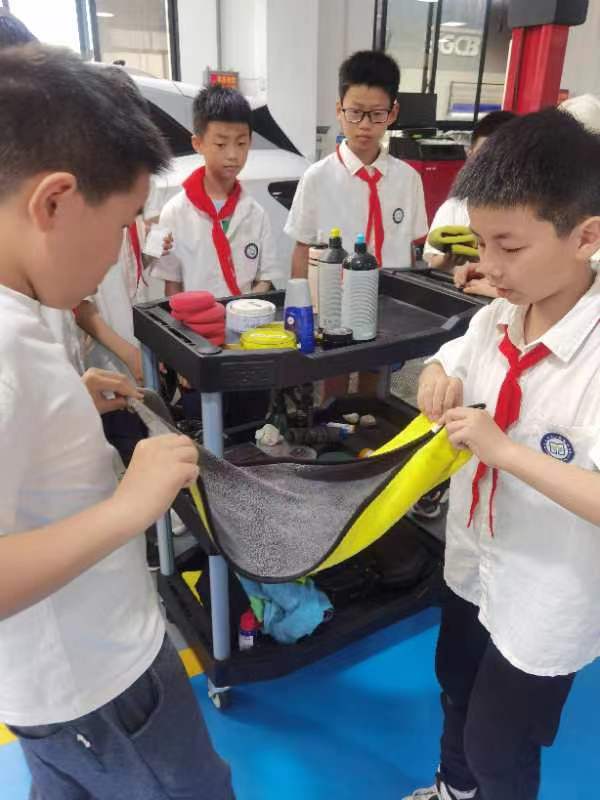 同学们兴致盎然地进行了多项体验:探秘工业机器人,见证人工智能在生产场景中的应用;观摩轨道交通仿真实训,实景体验地铁运行;亲手体验激光雕刻,亲手制作纪念卡片;了解汽车美容,了解汽车漆面修复基本知识,体验汽车打蜡。