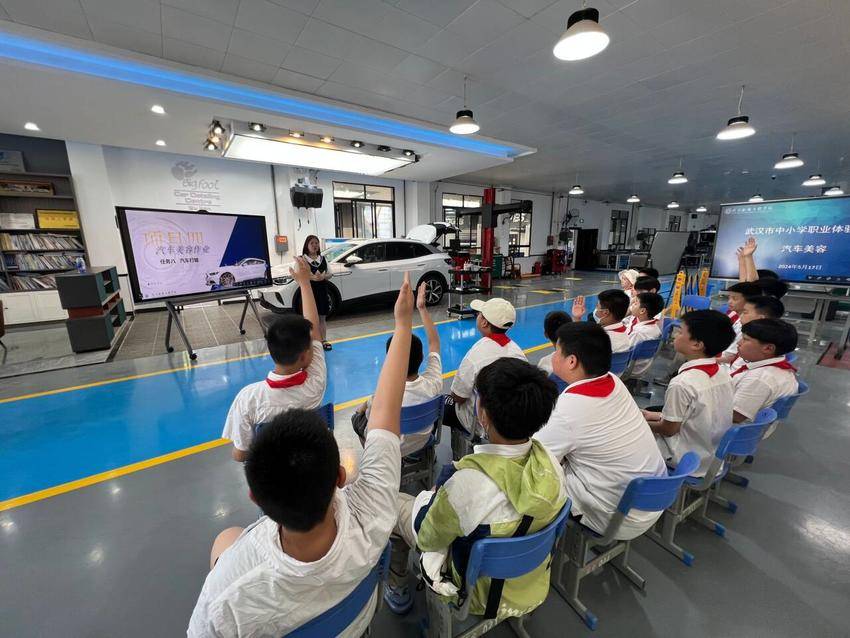 “我会自己动手为汽车打蜡啦!” “原来地铁是这样运行的啊”“这是我自己激光雕刻的中国地图……”近日,武汉市育才家园小学五年级100多名学生,利用课后服务时间走进武汉市机电工程学校,参加“慧”制造职业体验活动课程。