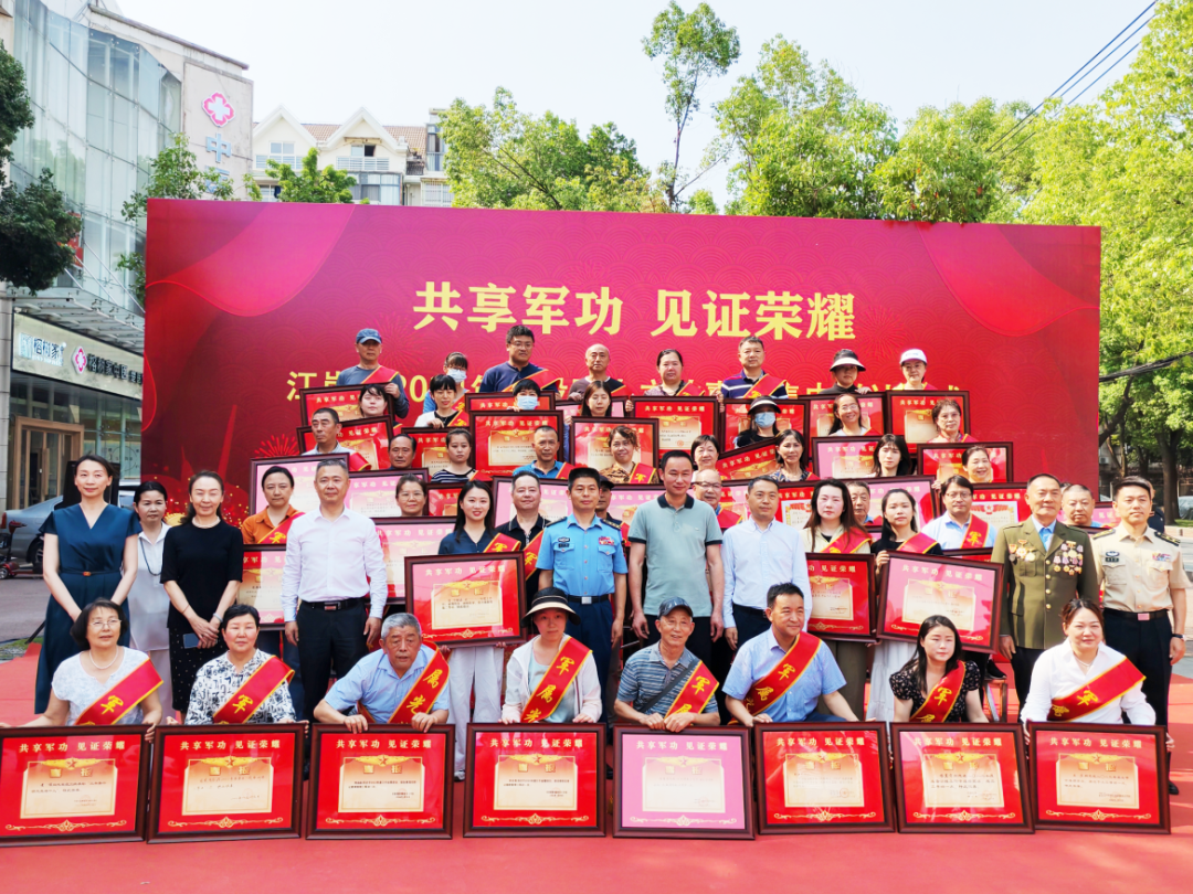近日,江岸区退役军人事务局联合区人武部等军地部门,在百步亭社区党群活动中心举办2024年“共享军功 见证荣耀”立功喜报集中送达活动,把立功喜报送到46位立功军人家属手中。