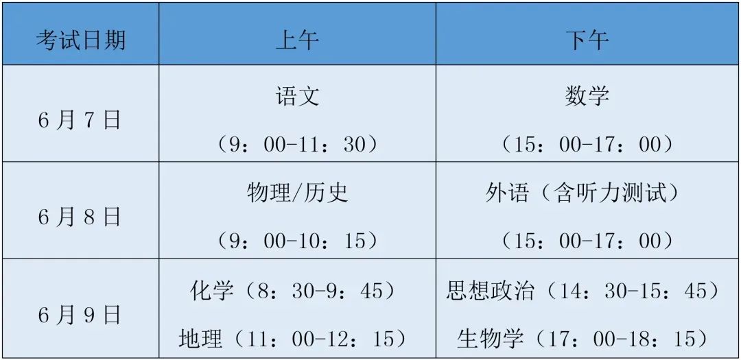 高考时间安排