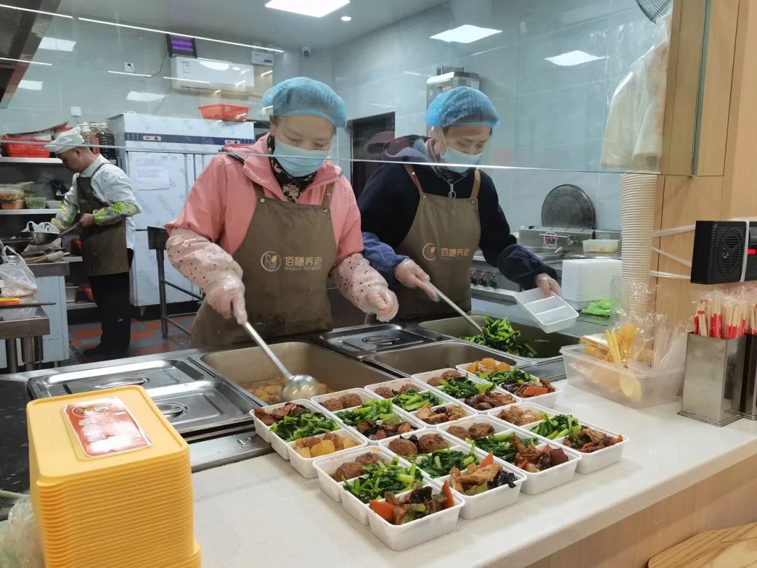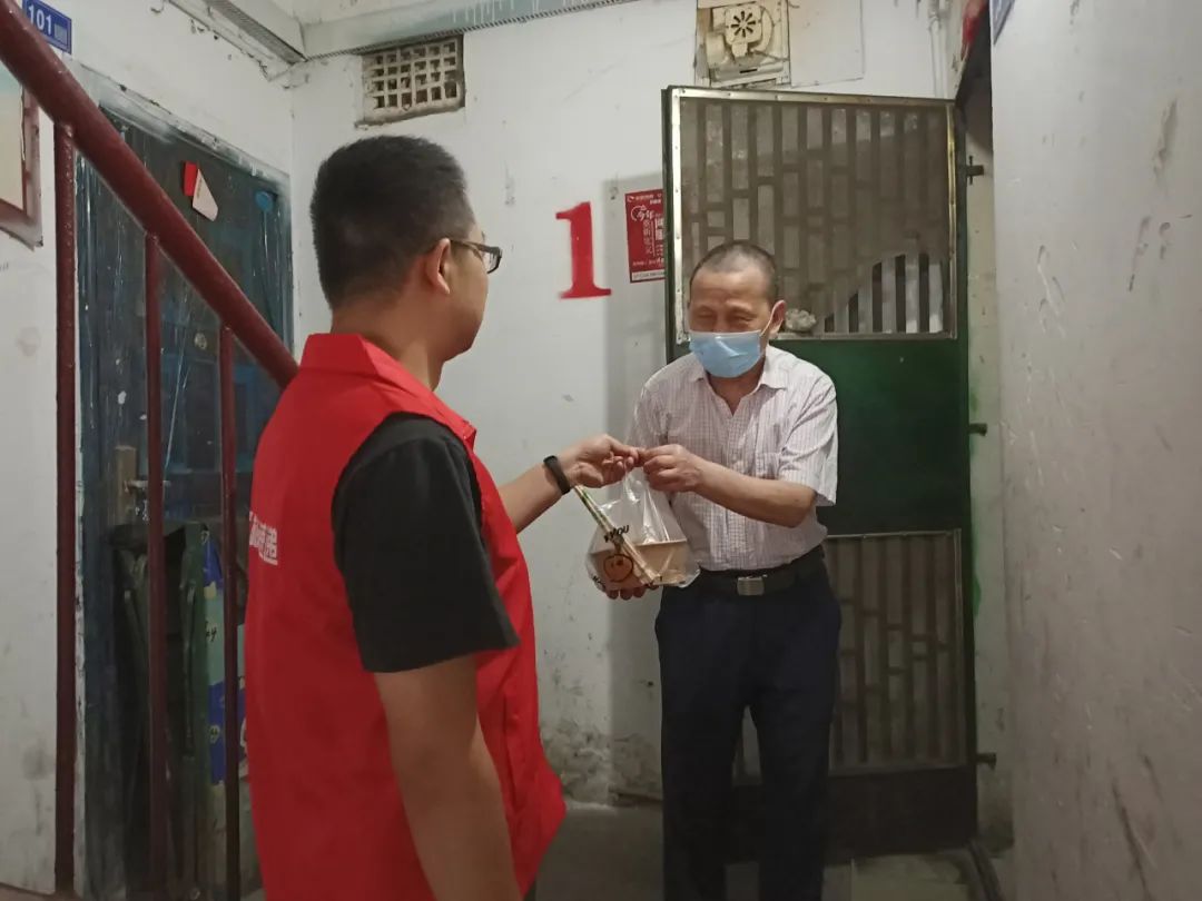 不断往来的就餐、取餐、送餐中,小哥们享受了食堂的便利服务,也为老年居民送上贴心关怀。