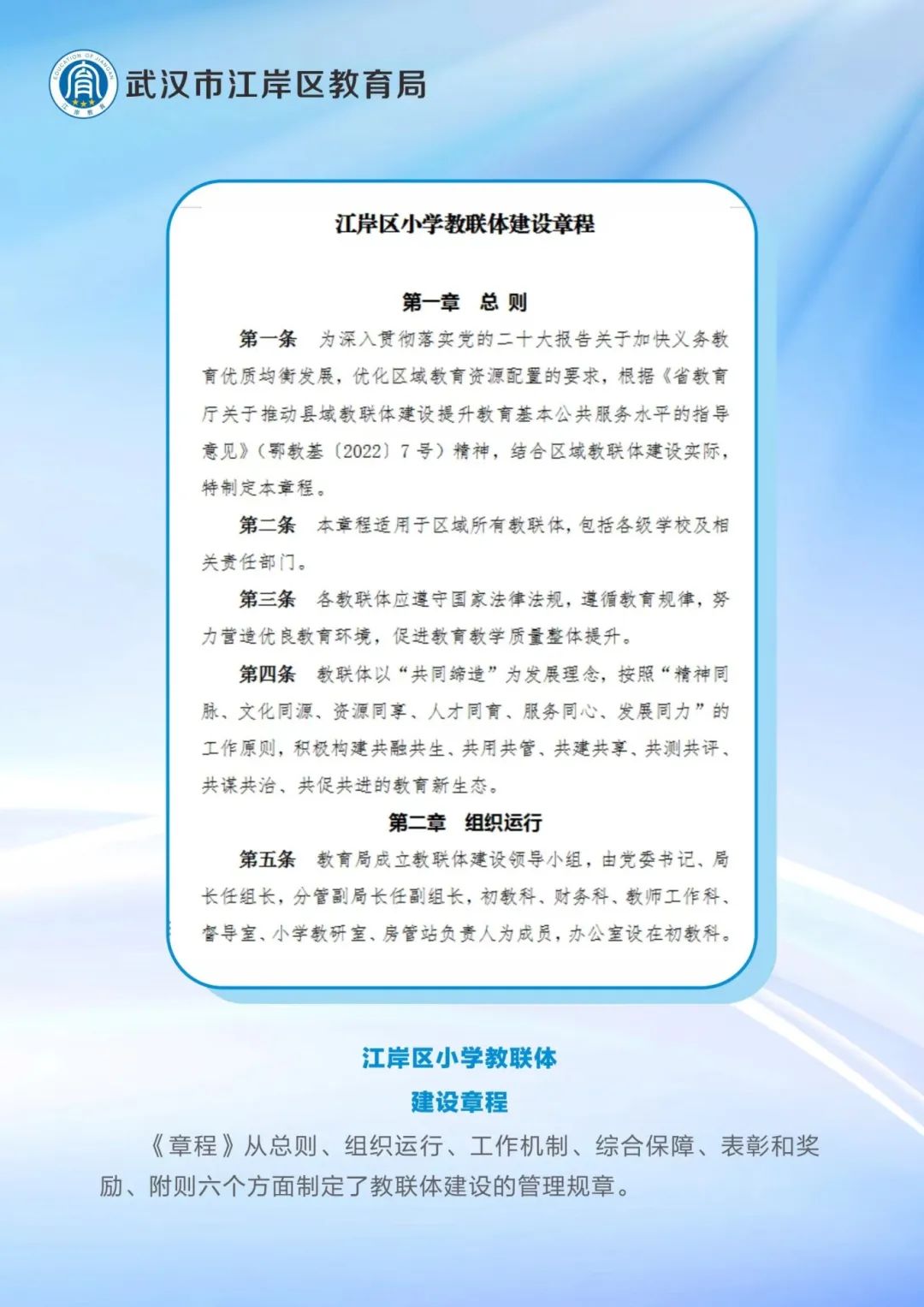 为办好老百姓家门口的学校,让每个学生都能享受优质教育、每位老师都获得职业幸福感,实现各校办学水平、学生学业发展水平优质均衡,江岸区推进教联体建设,助力美好教育,打造江岸教育“优质均衡”新高地。