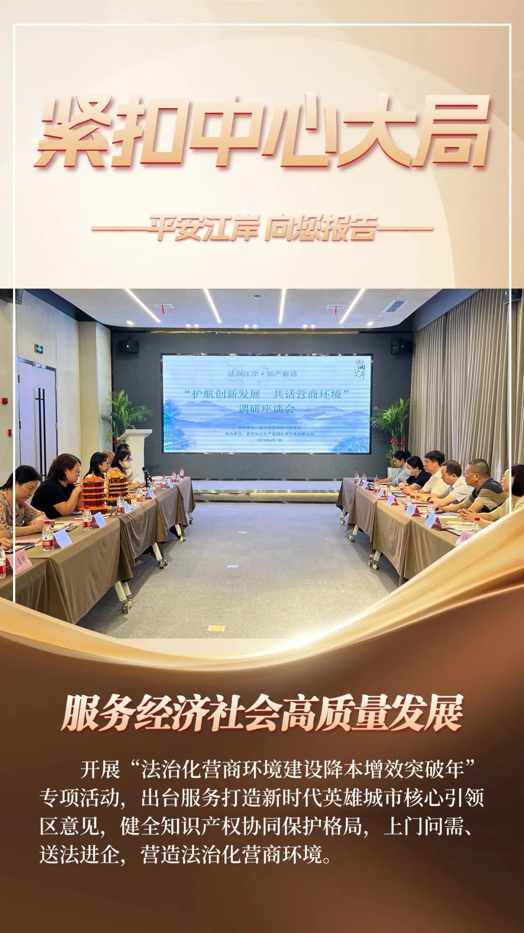 近年来,区法院在区委坚强领导下,坚持以习近平新时代中国特色社会主义思想为指导,全面学习贯彻党的二十大精神,深入践行习近平法治思想,坚持讲政治、促公正、提效率、强队伍,深度融入江岸高质量发展大局,做实为大局服务、为人民司法,为加快建设“汉口之心、美好江岸”,努力打造新时代英雄城市示范引领区,奋力谱写江岸社会主义现代化建设新篇章提供坚实有力的司法服务和保障。
