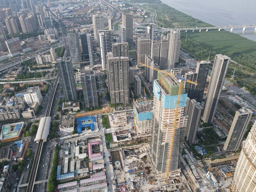 新希望华中总部旁,总投资约60亿元的泰康金融中心项目正冲刺7月底整体封顶;5月底,武汉周大福金融中心主塔楼筏板浇筑一次性完成4.3万立方米,正式“扎稳马步”向上“拔节”……