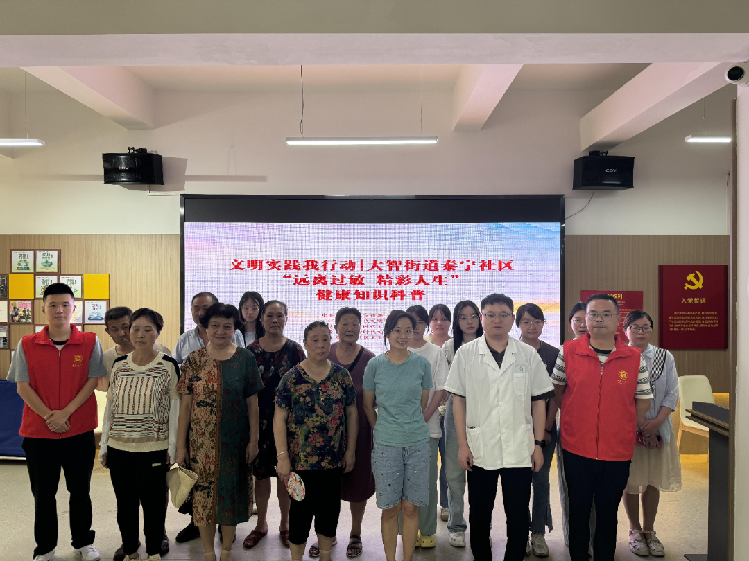 区委宣传部(文明办)组织区新时代文明实践中心、大智街道新时代文明实践所、大智街道泰宁社区新时代文明实践站开展“远离过敏 精彩人生”健康知识科普活动。大智街北社区卫生服务中心医生结合临床相关案例,为现场居民群众深入浅出地讲解过敏相关知识,科普预防过敏的方法。在互动交流环节,居民群众现场问诊,医生逐一解答。活动以辖区群众需求为导向,用专业化讲座提升全民健康水平,架起为民服务“连心桥”。