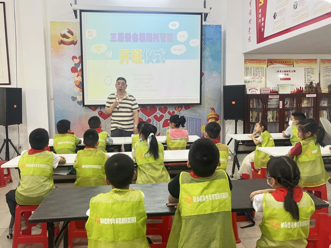 百步亭社区三居委会“第十四届读书节”暨2024年“暑期学堂”公益托管班开班。公益托管班以“志愿+公益”为原则,设置安全教育、手工课程、科学实验、亲子阅读、红色课堂等学习内容,动员辖区党员、在校大学生、人民教师等加入志愿者队伍,充实托管力量。三居委会“九哥志愿服务队”主动肩负起安全工作,“漫画达人”王景民用漫画讲述红色故事,“全国最美家庭”的星妈张小红讲家风故事。社区达人聚合力,共绘孩子们的缤纷暑期。