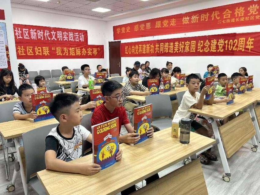 二七街道长建社区新时代文明实践站开展“小魔术见大智慧:魔法童话书”科学魔术知识活动。专业导师带领孩子们分组学习基础魔术技巧,揭示魔术背后的科学原理,并鼓励孩子们结合所学,充分发挥想象力,设计并表演自己的小魔术,培养孩子们的科技兴趣、动手能力、空间思维能力。