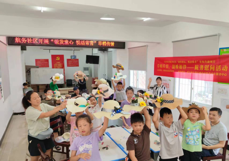 新村街道航务社区开展“草帽传情,温暖相伴”主题慰问活动。在老师和志愿者的带领下孩子们编制DIY草帽,随后,志愿者与小朋友们带着精心准备的慰问品前往空巢老人家中,为他们带去关怀与温暖。